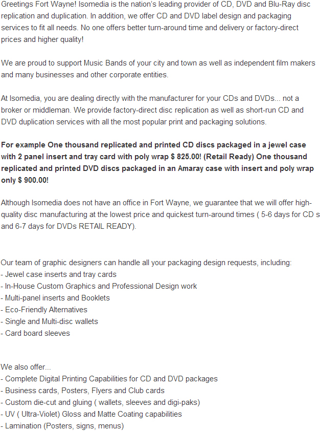 CD Duplication CD Replication DVD Duplication DVD Replication Fort Wayne